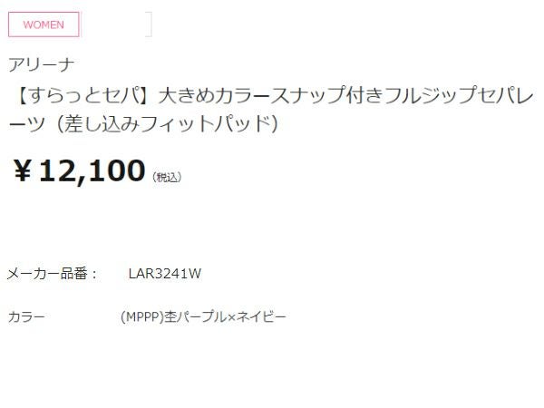 6. アリーナ すらっとセパ 大きめカラースナップ付きフルジップセパレーツ(差し込みフィットパッド) レディース arena アウトレット セール