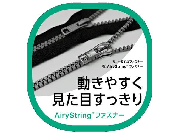フロントファスナーには特殊なAiryString(エアリーストリング)ファスナーを