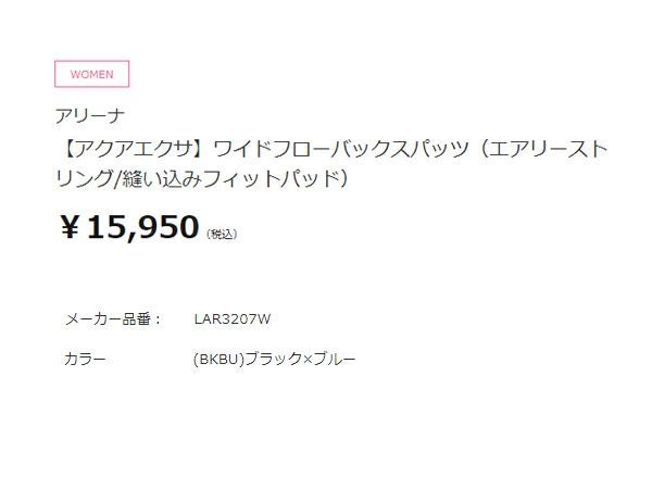 アリーナ arena アクアエクサ ワイドフローバックスパッツ(エアリーストリング 縫い込みフィットパッド) レディース ブラック 黒 水泳 スイム フィットネス 水着 オールインワン LAR3207W-BKBU