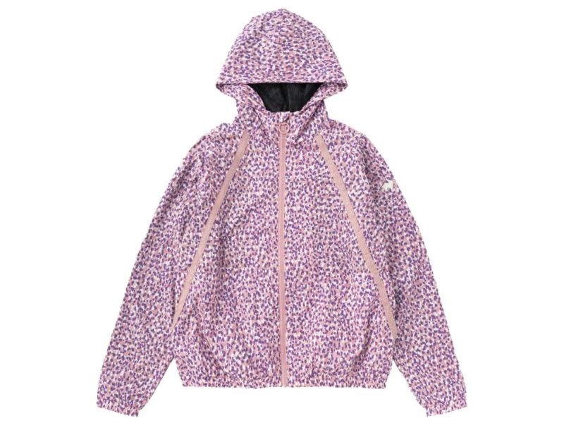 鮮やかな色彩のグラフィックを全面にプリントしたウィンドブレーカージャケット。