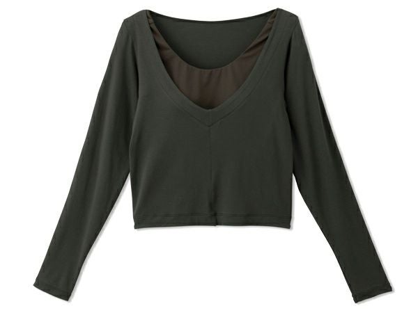 Vネックをフロントにすることでデコルテラインをきれいにみせることができ、