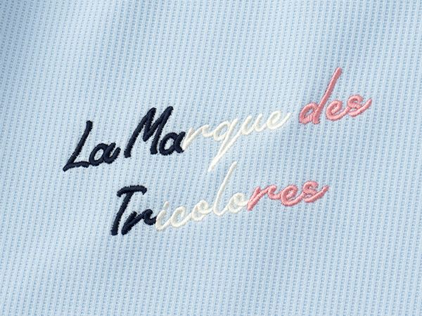 右胸のロゴ刺繍をトリコロールカラーで表現した遊び心ある1枚。