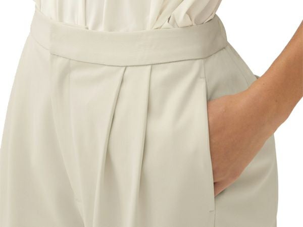 カーブラインに合わせて適度なゆとりを持たせたボトムス。
