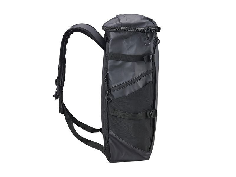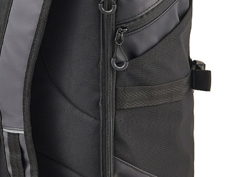 両サイドのファスナーポケットや背面にはダイレクトに荷物を出し入れできる