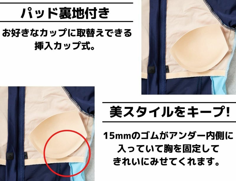 お好きなカップに取替えできる挿入カップ式。15mmのゴムがアンダー内側に