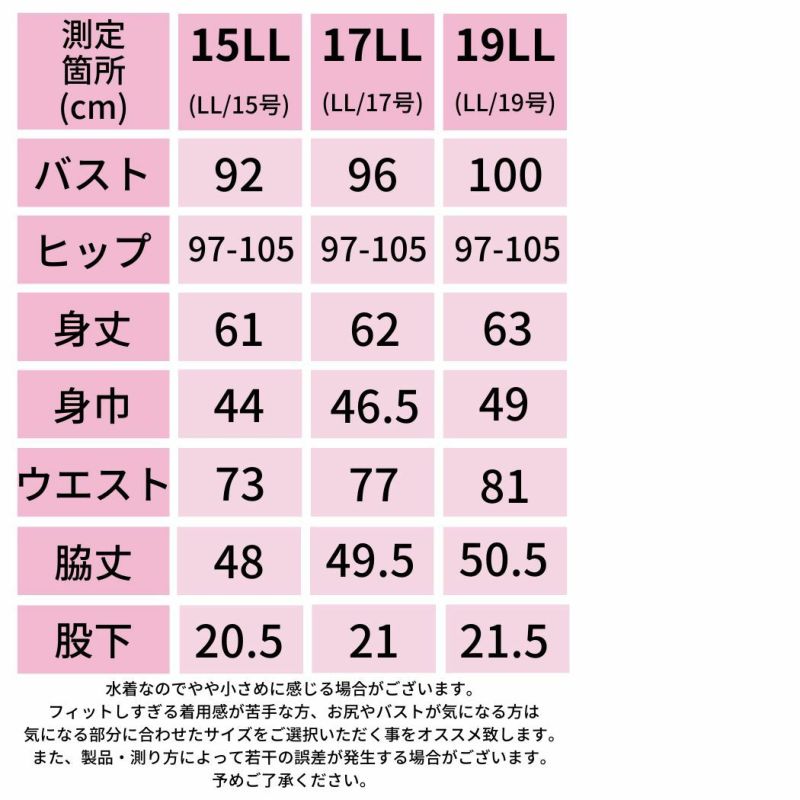 15LL/15号/ヌード寸法:バスト92cm ヒップ97-105cm 身丈:61cm 身巾:44cm ウエスト:73cm 脇丈:48cm 股下:20.5cm