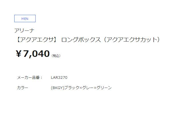 アリーナ arena アクアエクサ ロングボックス(アクアエクサカット) メンズ ブラック 黒 水泳 スイム フィットネス 水着 LAR3270-BKGY