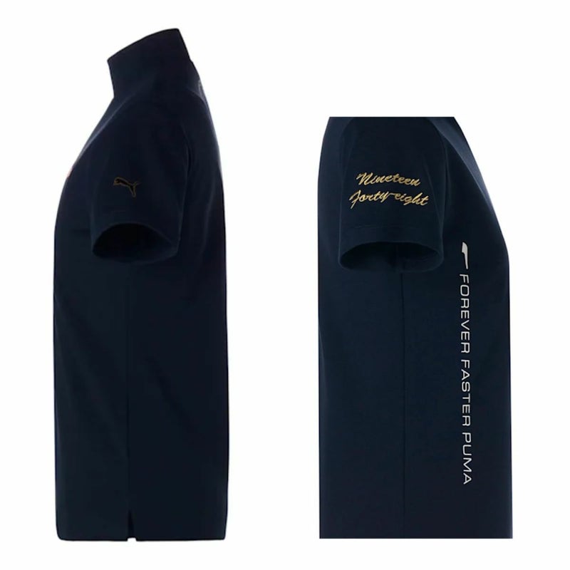 向かって右の袖と胸部にプーマのロゴ、左袖には英字、