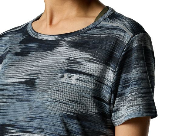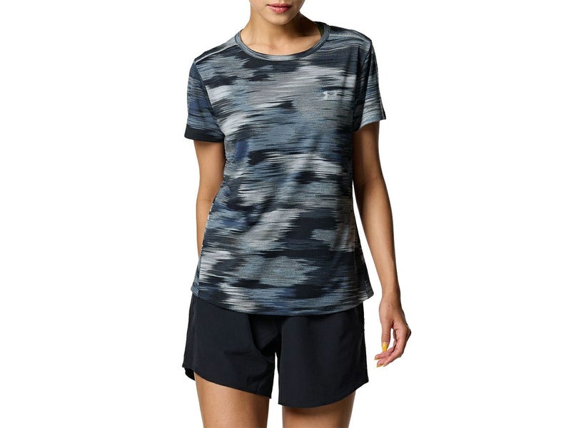 スポーツ フィットネス ウェア アンダーアーマー UNDER ARMOUR スピードストライド プリント Tシャツ レディース 春 夏 グレー 灰色 スポーツ フィットネス 半袖 Tシャツ 1381443-011