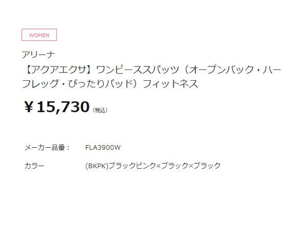 アリーナ arena アクアエクサ ワンピーススパッツ(オープンバック ハーフレッグ ぴったりパッド) レディース ブラック 黒 水泳 スイム フィットネス 水着 オールインワン FLA3900W-BKPK
