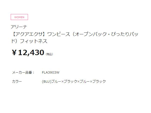 アリーナ arena アクアエクサ ワンピース(オープンバック ぴったりパッド) レディース ブルー 青 ブラック 黒 水泳 スイム フィットネス 水着 ワンピース FLA3903W-BLU