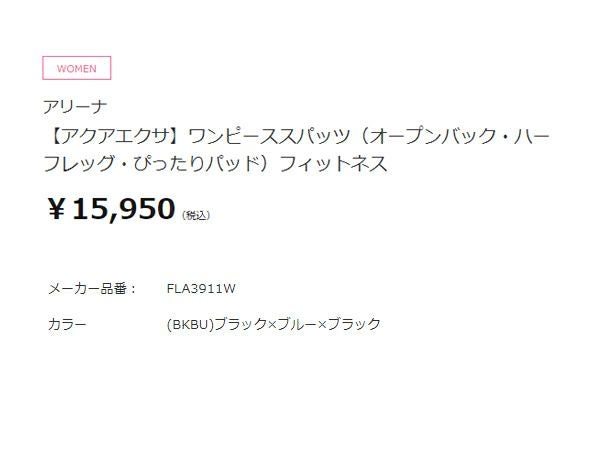 【37%OFF】 アリーナ arena アクアエクサ ワンピーススパッツ(オープンバック ハーフレッグ ぴったりパッド) レディース ブラック 黒 水泳 スイム フィットネス 水着 オールインワン FLA3911W-BKBU アウトレット セール