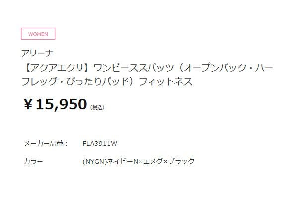 【44%OFF】 アリーナ arena アクアエクサ ワンピーススパッツ(オープンバック ハーフレッグ ぴったりパッド) レディース ネイビー 紺 水泳 スイム フィットネス 水着 オールインワン FLA3911W-NYGNアウトレット セール