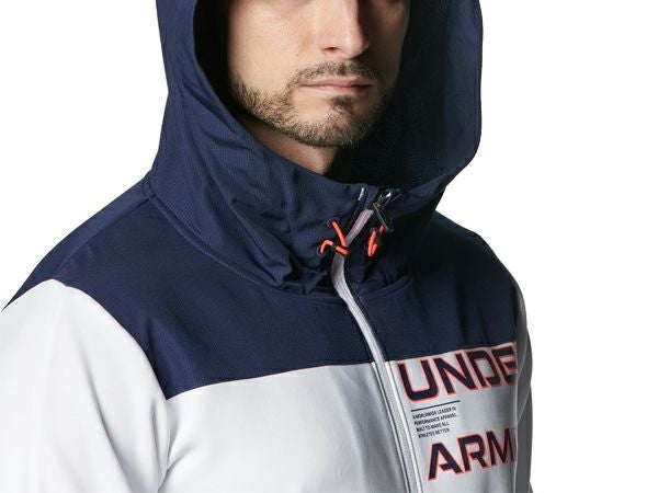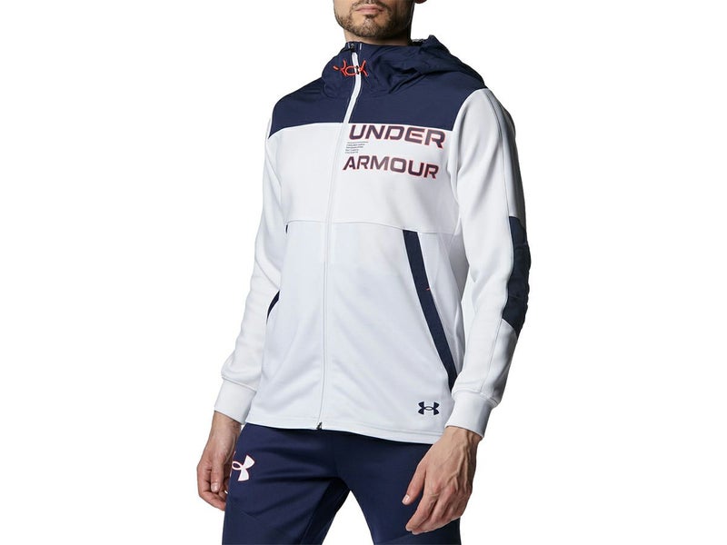 スポーツ トレーニング ウェア アンダーアーマー UNDER ARMOUR アーマーニット ハイブリッド フルジップ ジャケット メンズ 秋 冬 ホワイト 白 スポーツ トレーニング パーカー ジャケット 1381339-100