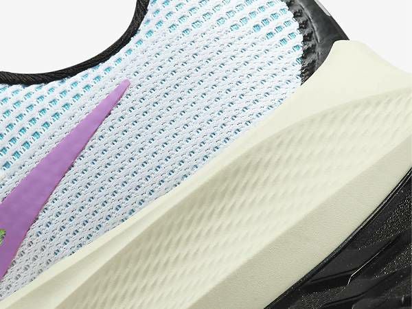 ペガサス 40のデザインは、シューズ内部の機能から改良点を考えました。シューズが内側から土踏まずを優しく包み込み、外から締め付けられるような感覚を減らす構造です。足中央部のバンドが、さらに固定感を高めています。 シューズ内側の快適さに加え、優れた通気性も追求しました。足の形状にフィットする円形のパターンを開発し、足の最もデリケートな部分であるつま先、土踏まず、ヒールをしっかり保護します。