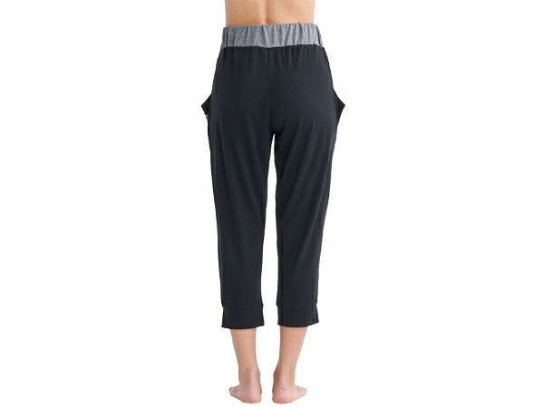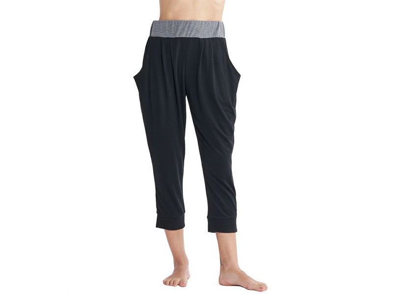 薄手素材でゆるっとした膝下丈のヨガパンツ。