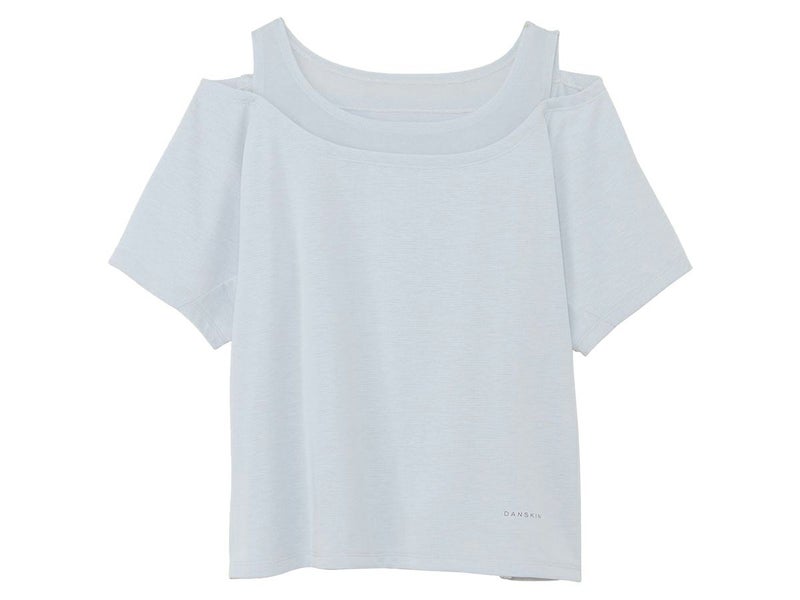 【10%OFF】スポーツ フィットネス ウェア ダンスキン DANSKIN HYBRID VENT TULLE SHORT TOP ハイブリッドベントチュールクロップドタンクショートトップ レディース 春 夏 ブルー 青 スポーツ フィットネス 半袖 Tシャツ DC523301-CK