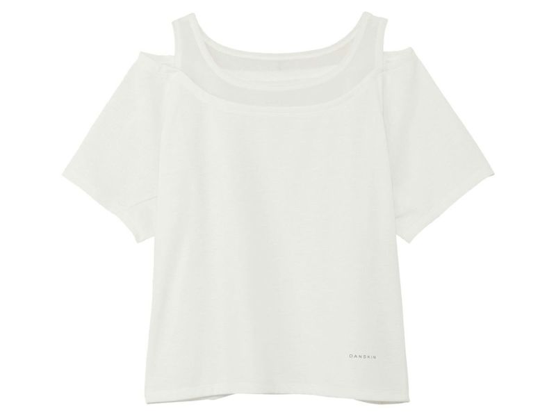 【10%OFF】スポーツ フィットネス ウェア ダンスキン DANSKIN HYBRID VENT TULLE SHORT TOP ハイブリッドベントチュールクロップドタンクショートトップ レディース 春 夏 ホワイト 白 スポーツ フィットネス 半袖 Tシャツ DC523301-JW