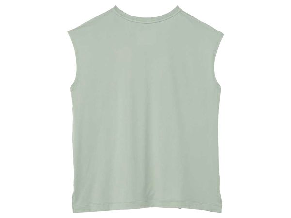 運動中にウェアがズレないよう衿ぐりの開きを少し狭くしています。