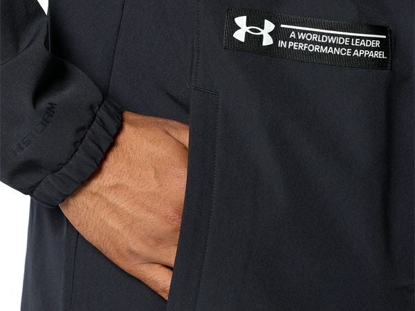 裏起毛のウーブン素材にはUA独自の撥水加工が施され、荒天時でも