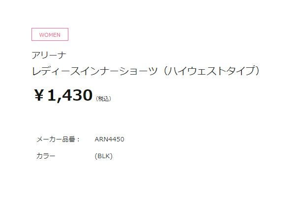 【10%OFF】 アリーナ arena インナーショーツ(ハイウェストタイプ) レディース ブラック 黒 水泳 スイム インナー ショーツ ARN4450-BLK