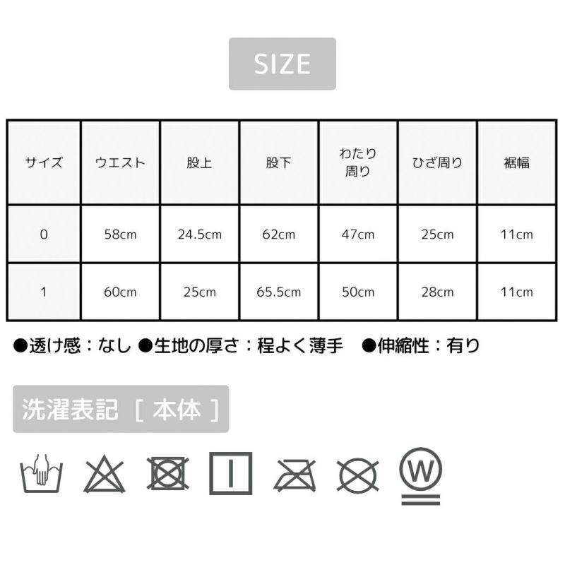 サイズ0/ウエスト:約58cm 股上:約24.5cm 股下:約62cm わたり周り:約47cm ひざ周り:約25cm 裾幅:約11cm