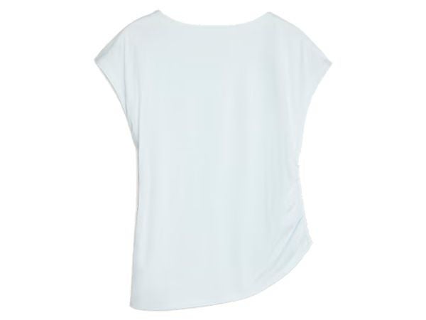 美しいドレープを生み出すサイドのデザインやアシンメトリーヘムなど、