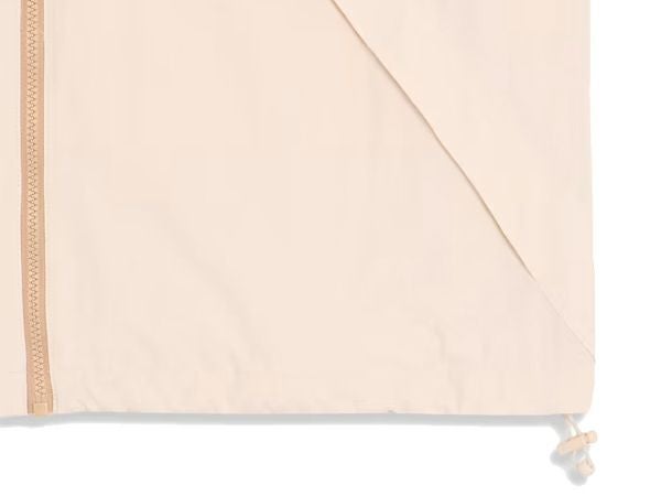 フルジップで首元を調整でき、袖はゴム、裾はドローコードで