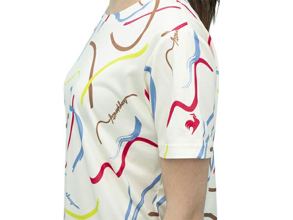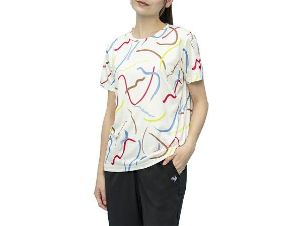 【10%OFF】スポーツ フィットネス ウェア ルコック le coq sportif 総柄プリント 半袖Tシャツ レディース 春 夏 ホワイト 白 スポーツ フィットネス 半袖 Tシャツ QMWWJA03-MLT