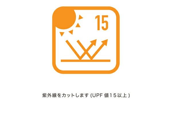 吸汗速乾、UVカット(UPF15)、SUNSCREEN。