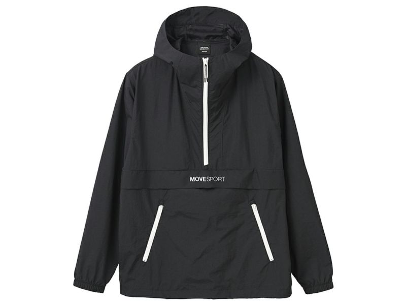 6. デサント DESCENTE ナイロンスパンライク アノラックパーカー メンズ 秋 冬 ブラック 黒 スポーツ トレーニング パーカー ジャケット DMMWJF10-BK
