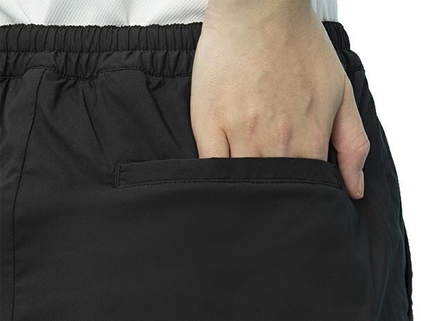 ウエストにはゴム入りかつ紐付きのため、サイズ調整が自在です。