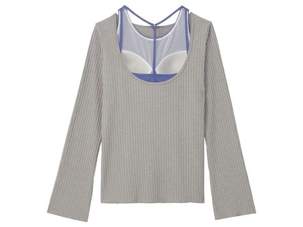 カップ付きのミドル丈ブラトップとカットソーの2点セットアイテムです。