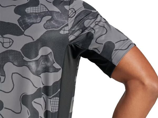 全体にあしらったカモフラージュプリントが印象的なデザイン。