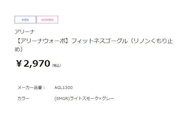 水泳 スイム 小物 ゴーグル アリーナ arena アリーナウォーボ フィットネスゴーグル(リノンくもり止め) ユニセックス グレー 灰色 水泳 スイム 小物 ゴーグル AGL1300-SMGR