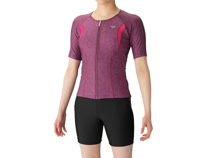 6. アリーナ arena すらっとセパ 大きめカラースナップ付きフルジップ袖有りセパレーツ(差し込みフィットパッド) 大きいサイズ レディース パープル 紫 ブラック 黒 水泳 スイム フィットネス 水着 LAR3242WE-MPPK アウトレット セール