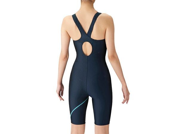 6. アリーナ arena アクアエクサ ワンピーススパッツ(オープンバック ハーフレッグ ぴったりパッド) レディース ネイビー 紺 水泳 スイム フィットネス 水着 オールインワン LAR4202W-NYSX