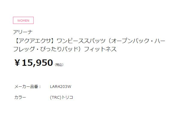 水泳 スイム フィットネス 水着 アリーナ arena アクアエクサ ワンピーススパッツ(オープンバック ハーフレッグ ぴったりパッド) レディース ネイビー 紺 水泳 スイム フィットネス 水着 オールインワン LAR4203W-TRC