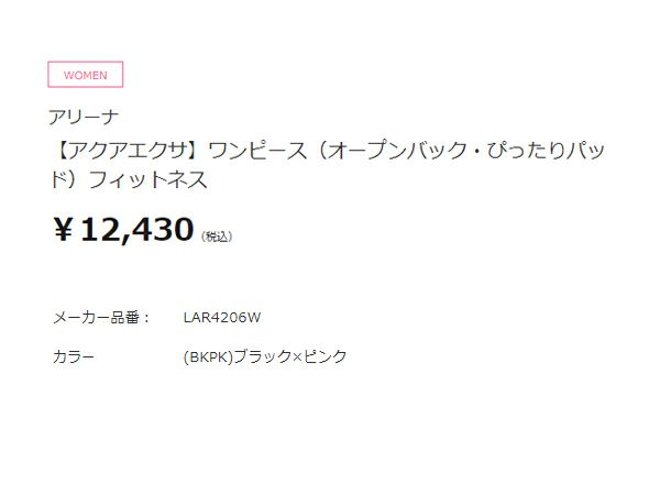 水泳 スイム フィットネス 水着 アリーナ arena アクアエクサ ワンピース(オープンバック ぴったりパッド) レディース ブラック 黒 水泳 スイム フィットネス 水着 ワンピース LAR4206W-BKPK