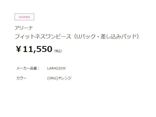 水泳 スイム フィットネス 水着 アリーナ arena フィットネスワンピース(Uバック 差し込みパッド) レディース オレンジ 橙 水泳 スイム フィットネス 水着 ワンピース LAR4220W-ORG