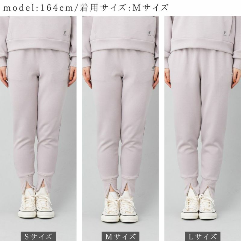 裾の中心に深めのスリットをあしらい、シンプルなスウェットパンツに洗練された抜け感をプラスしました。