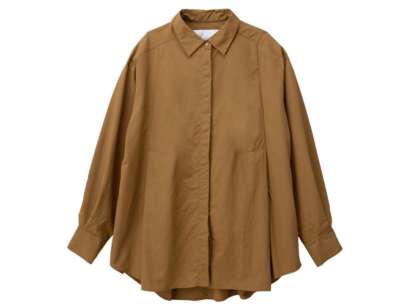シャツのディティールを取り入れ、ボリューム感のあるシルエットが