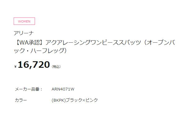 【10%OFF】水泳 スイム 競泳 水着 アリーナ arena WA承認 アクアレーシングワンピーススパッツ(オープンバック ハーフレッグ) レディース ブラック 黒 水泳 スイム 競泳 水着 オールインワン ARN4071W-BKPK