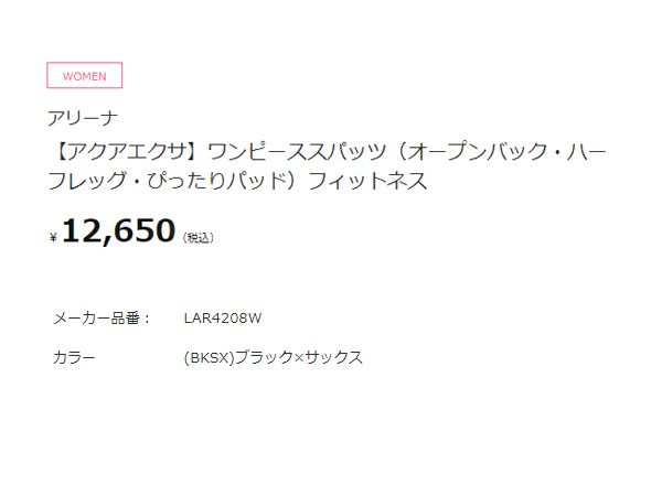【10%OFF】水泳 スイム フィットネス 水着 アリーナ arena アクアエクサ ワンピーススパッツ(オープンバック ハーフレッグ ぴったりパッド) レディース ブラック 黒 水泳 スイム フィットネス 水着 オールインワン LAR4208W-BKSX