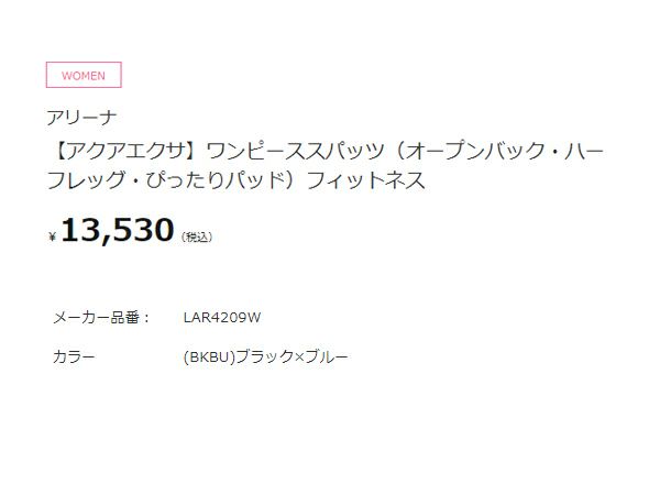 【10%OFF】水泳 スイム フィットネス 水着 アリーナ arena アクアエクサ ワンピーススパッツ(オープンバック ハーフレッグ ぴったりパッド) レディース ブラック 黒 水泳 スイム フィットネス 水着 オールインワン LAR4209W-BKBU