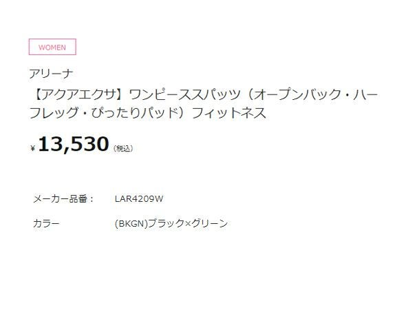 【10%OFF】水泳 スイム フィットネス 水着 アリーナ arena アクアエクサ ワンピーススパッツ(オープンバック ハーフレッグ ぴったりパッド) レディース ブラック 黒 水泳 スイム フィットネス 水着 オールインワン LAR4209W-BKGN