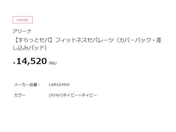 【10%OFF】水泳 スイム フィットネス 水着 アリーナ arena すらっとセパ フィットネスセパレーツ(カバーバック 差し込みパッド) レディース ネイビー 紺 水泳 スイム フィットネス 水着 LAR4249W-NYNY