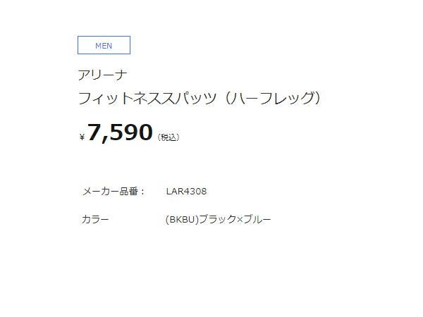 6. アリーナ arena フィットネススパッツ(ハーフレッグ) メンズ ブラック 黒 水泳 スイム フィットネス 水着 LAR4308-BKBU