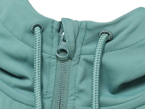 フード付きで襟元は少し高く仕上げチンガードを施しました。