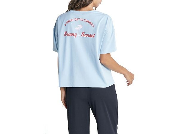 スポーツ フィットネス ウェア ロキシー ROXY SUNNY SUNSET サニー サンセット ラッシュTシャツ レディース 春 夏 ブルー 青 スポーツ フィットネス 半袖 Tシャツ RLY232012-BLU
